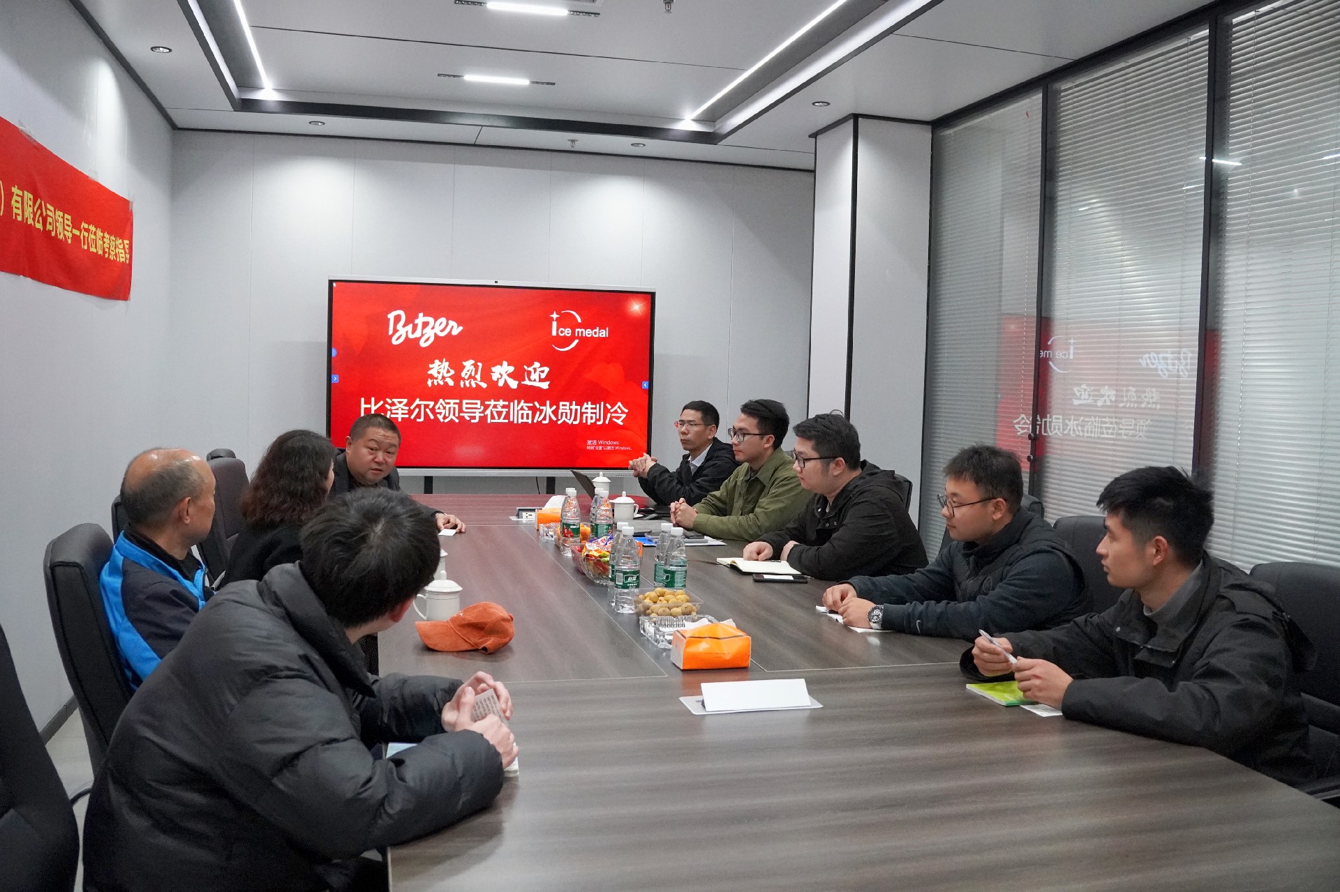 3月14日下午,比澤爾制冷技術(shù)(中國)有限公司領(lǐng)導(dǎo)一行蒞臨冰勛制冷進(jìn)行考察指導(dǎo)。冰勛制冷總經(jīng)理魯岳雷給予熱情接待,技術(shù)部、采購部全程陪同。